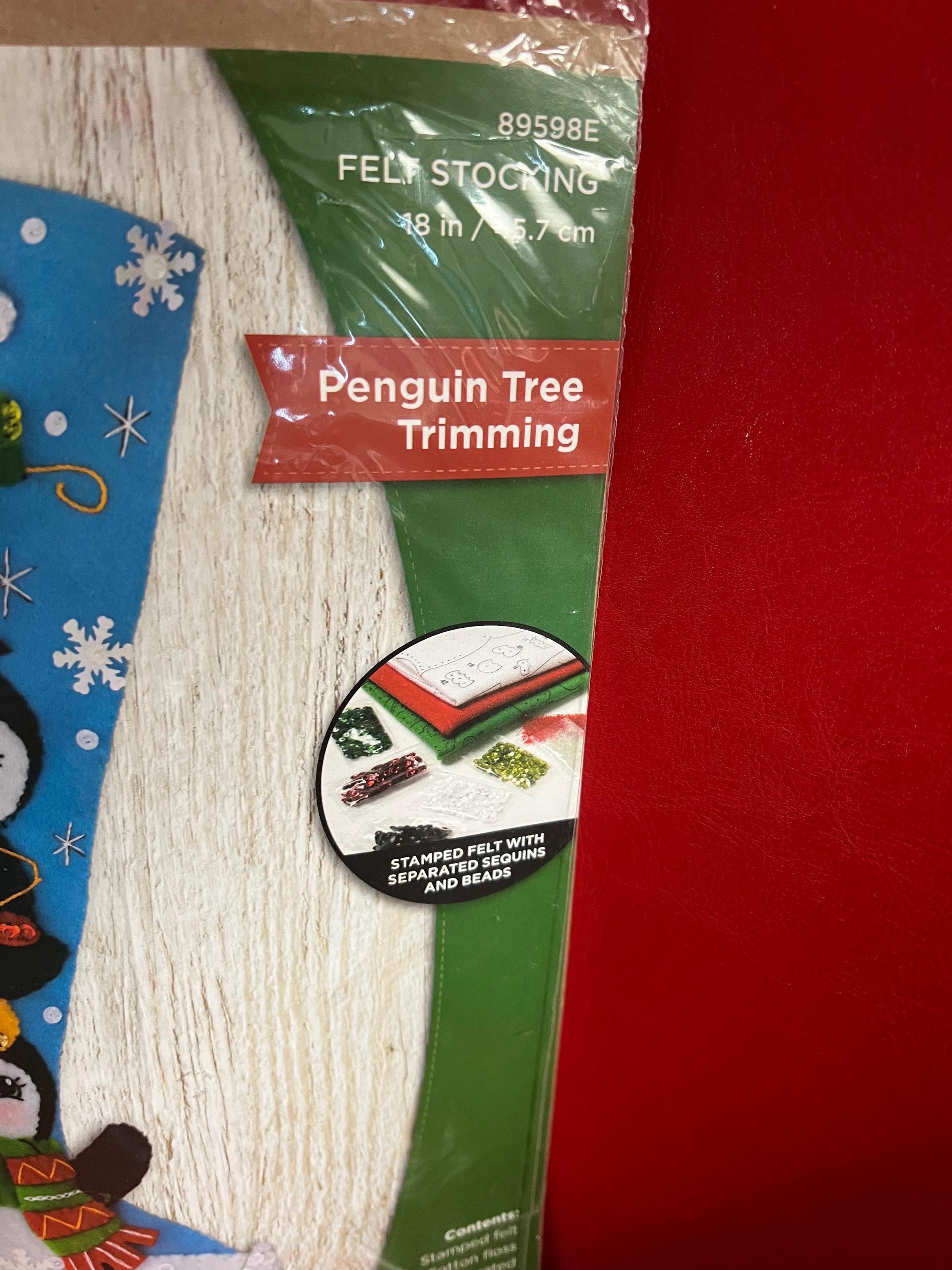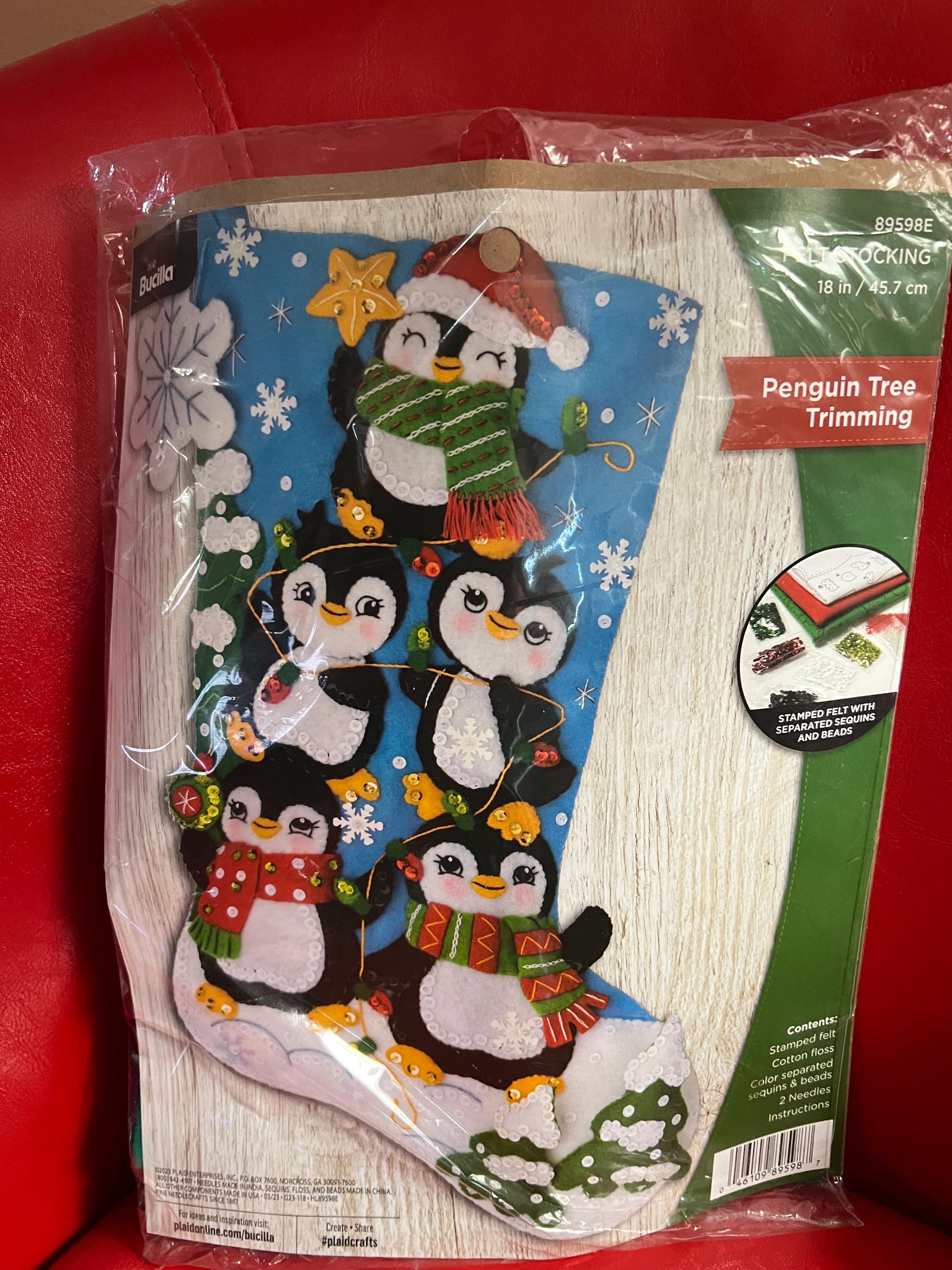 Custom Bucilla Felt Christmas Stocking - Penguin Tree, Sequins, Handmade - 2026 Pre-Order